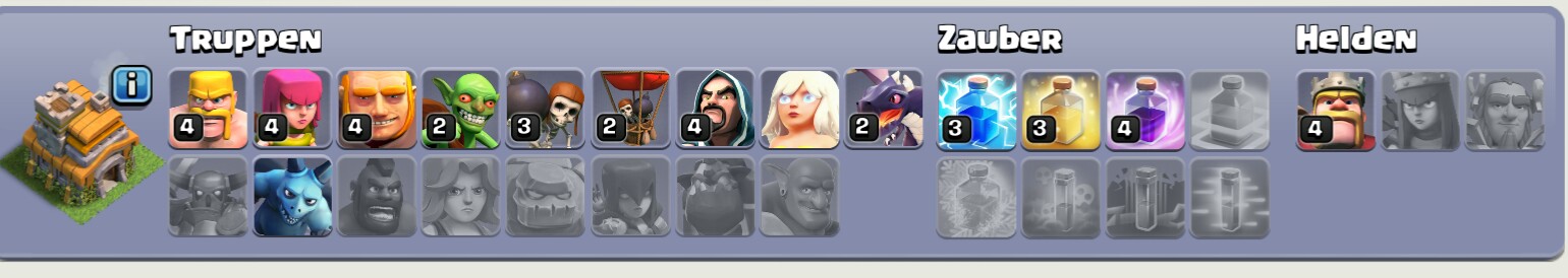 Die 10 Drachen Taktik reicht für jedes RH7 Dorf. Nimm Blitzzauber mit und Blitz die rechte LA weg. Nimm Ballons so hoch wie möglich in der CB mit.