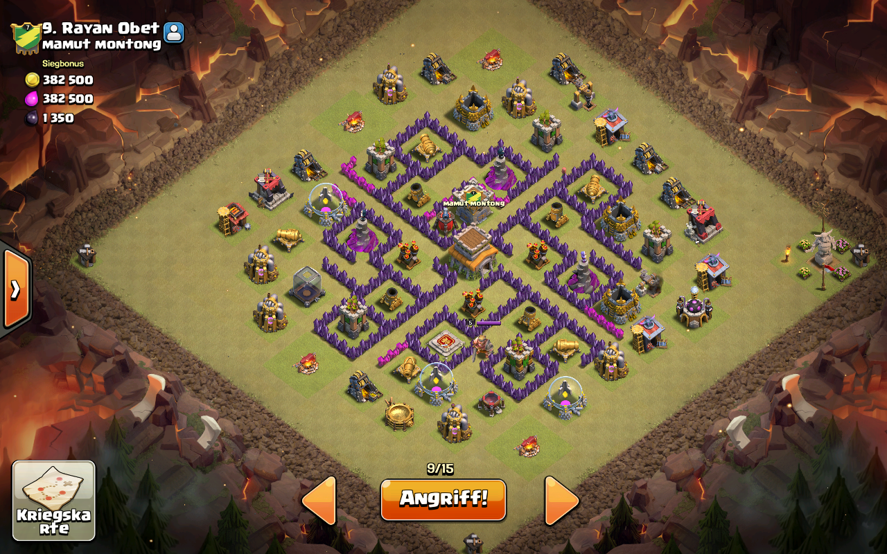 Solangsam könntest du auch die Loons setzen, am besten immer dann wenn jenes Gebäude gerade mit den Walküren beschäftigt ist.Hogs von links oben gegen den Uhrzeigersinn und Ballons Sinngemäß setzen.