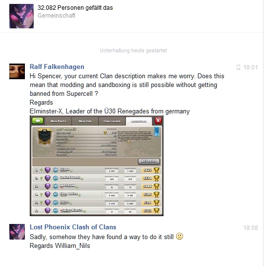 das ist die aktuelle Clanbeschreibung von Lost Phoenix (Galadon, Spencer etc.). Offensichtlich sind sie auf einen aktuellen CW Gegner gestoßen, der immer noch modden kann. Ich hab den CF von Lost Phoenix mal angeschrieben.