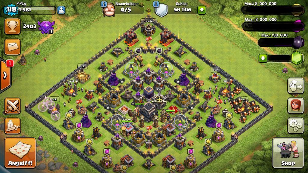 Der Plan ist auf Rh 9 max zu gehen, deshalb versuche ich derzeit Mauern und Helden gleichmäßig zu uppen.