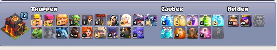 Teslas stehen alle beim Rathaus und sind auf Level 7. In der Clanburg befindet sich ein Golem.