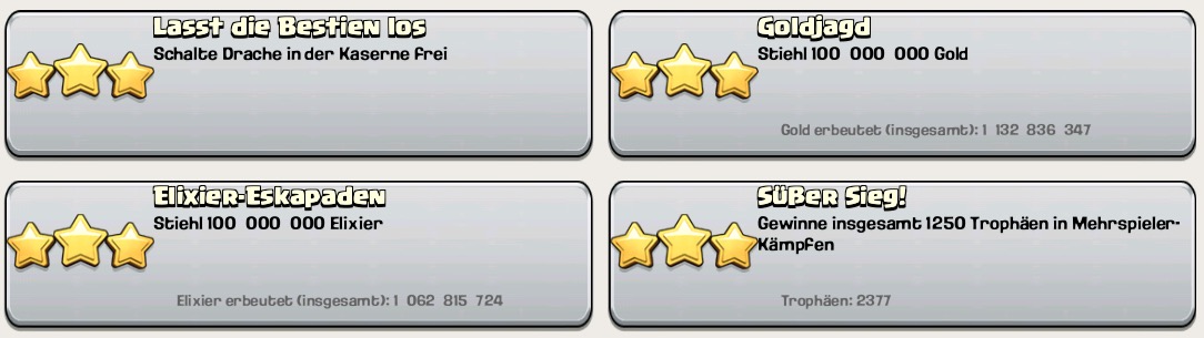 Im Moment bin ich dabei noch die letze Einheit auf RH9 max. LV zu ziehen (Drachenbaby). Die Mauern sind inzwischen alle mindestens LV10, 14 Stück sogar schon auf LV11!