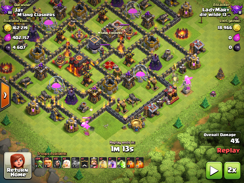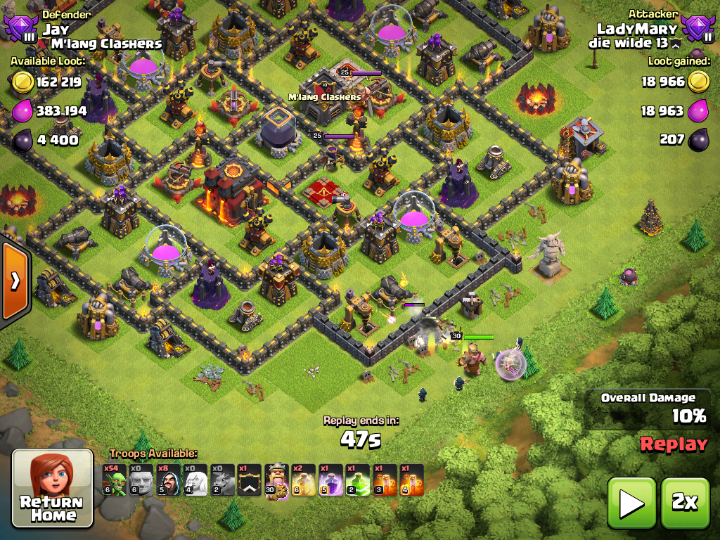 Gegen TH 10 sollte man idealerweiße nur Singleinfernos angreifen.
