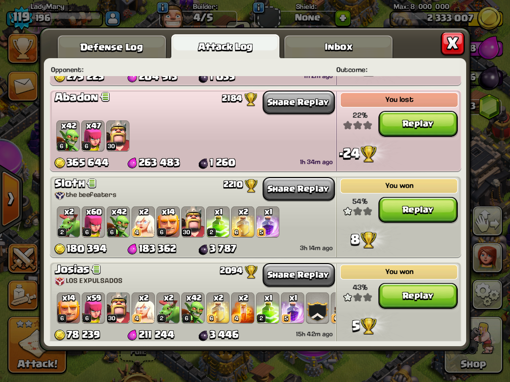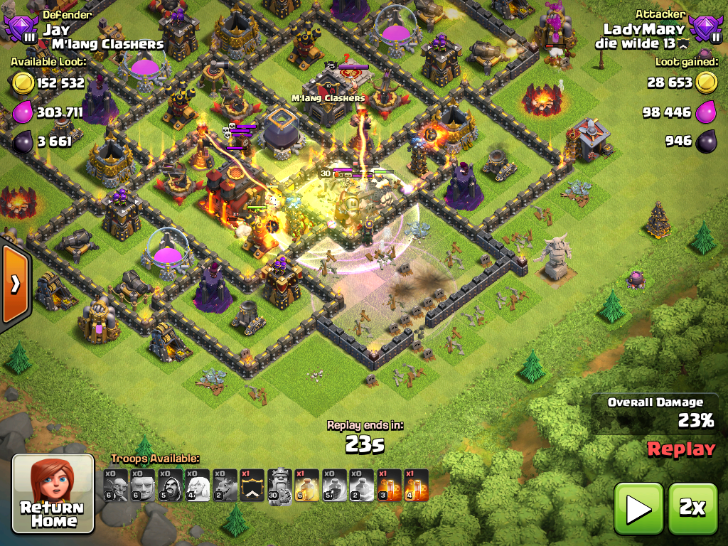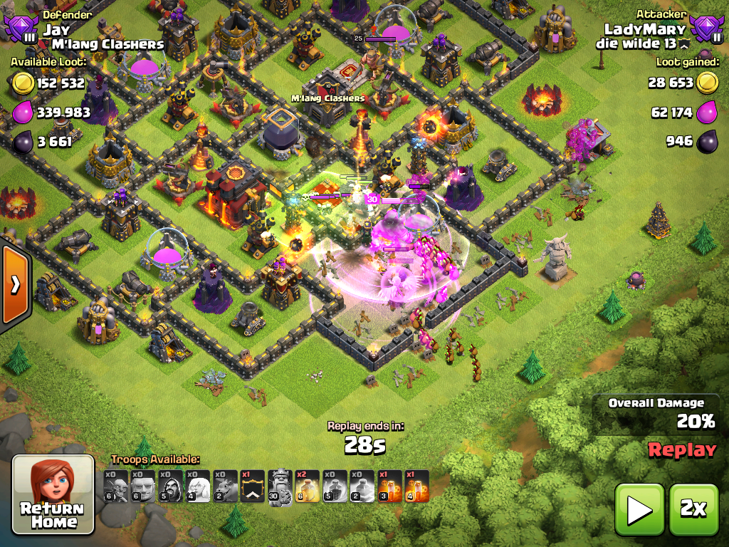Diese Armee ist sehr vielseitig. Man kann ohne Probleme inaktive Basen mitnehmen, zwischen den Angriffen einen Goblin Knife bzw. Die Milkingstrategie machen (während man wartet und die Armee noch nicht ganz fertig ist... einfach bohrer und sammler abfarmen) und auch den ein oder anderen TH 10 mitnehmen, obwohl man selbst nur TH 9 ist. TH 10er bieten einem mindestens 1000 mehr dunkles Elexier an.