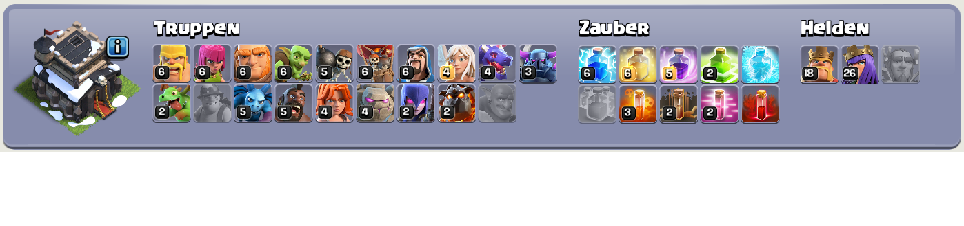 Ich kann jede Truppe/Zauber maxed in meine CB bekommen.