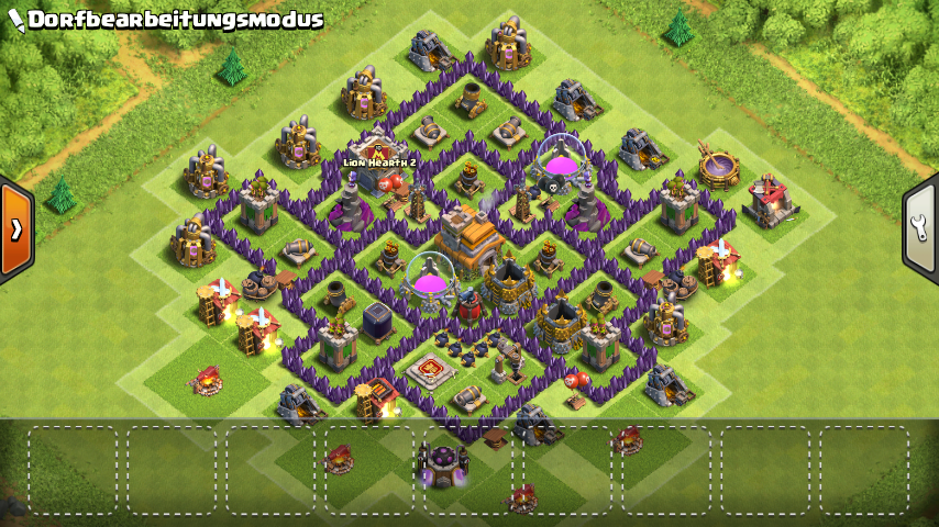 Es fehlen noch einige Fallen, ein weiterer Minenwerfer, etwa 2 Elexiersammler sowie 3 Kasernen und 1 Tesla.