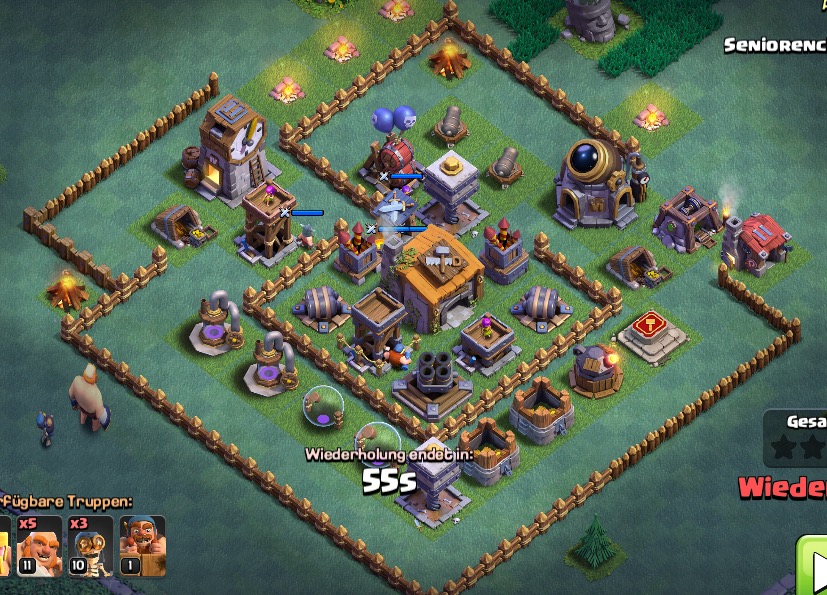 Größte Gefahr ist da immer der brutzler der alle minions abzieht, aber so aussen wie der ist kann man den entweder direkt mit minions und der weitschußfähigkeit rausnehmen, oder einfach mit der BM Tanken. hast du schon Lufttruppen gelevelt?