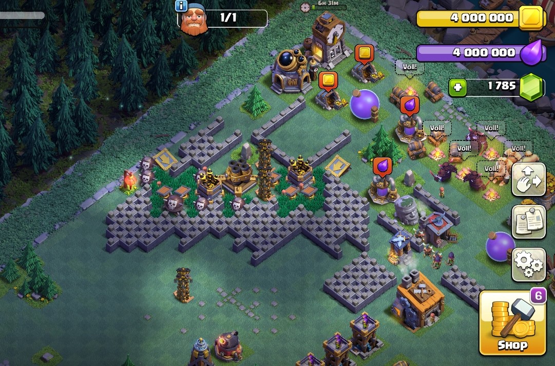 Das schöne ist ja, dass man einfach auf eine zweite Base wechselt zum Gärtnern und nachwachsen lassen und eben nicht angegriffen wird. Im Hauptdorf habe ich auch eine Zeitlang etwas gegärtnert (Bäume an den Rand), aber hab zu oft vergessen, das Layout wieder zurückzuwechseln. Da kriegt man dann zu oft 100% reingewürgt.