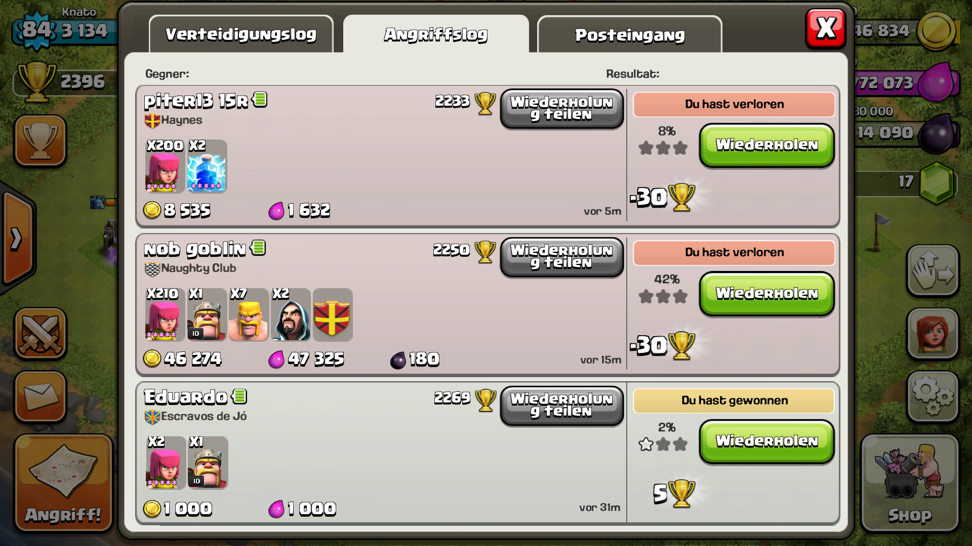 Ich hatte dagegen gerade einen richtig guten Angriff mit gutem Loot für mein Level.