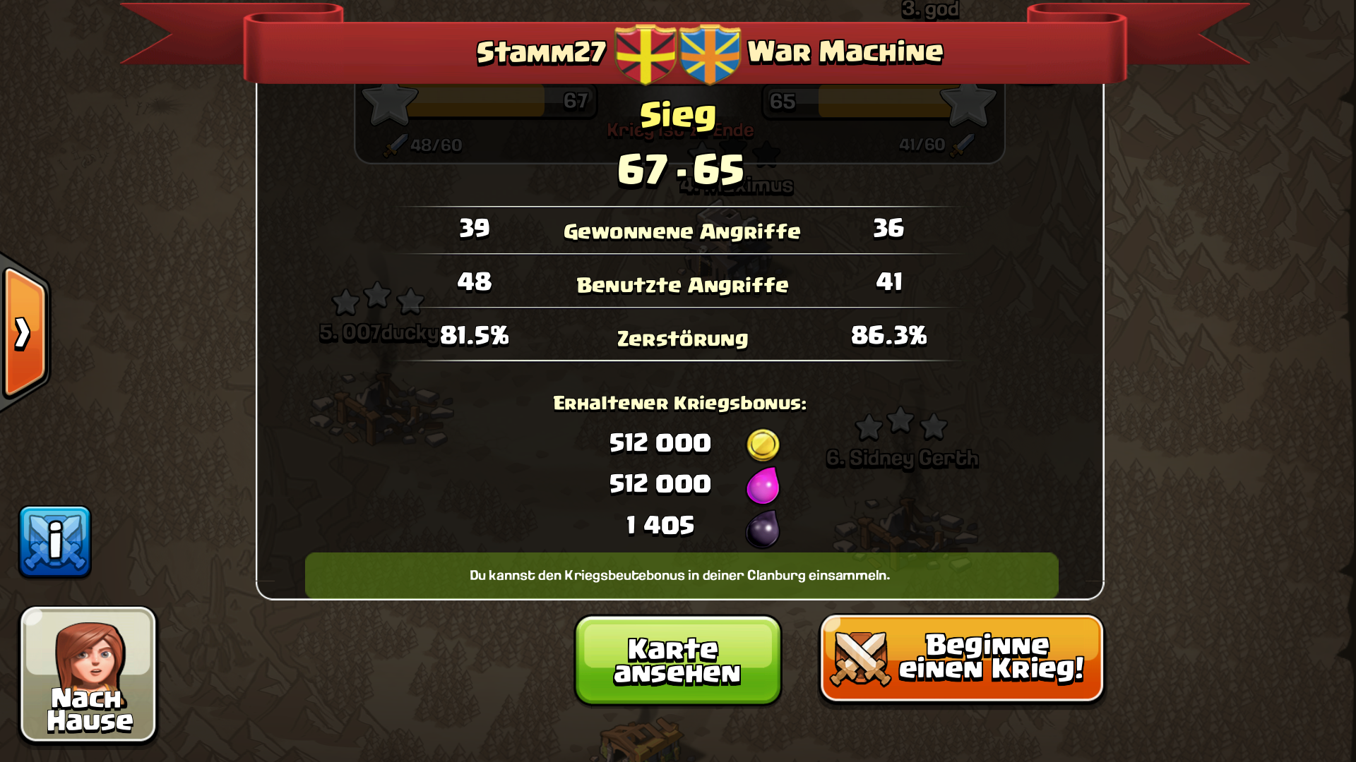 Da kam ein Level 111 Typ in unseren Clan, haut behauptet er wär ein Kumpel von dem Besten Mitlgied von uns (Lvl 125). Ich hab ihm natürlich geglaubt. Dann wollte er kurz CÄ werden, um noch ein paar Freunde einzuladen. Ich hab ihm vertraut und habs gemacht (hab ich bis jetzt noch nie gemacht...und werd ich abe jetzt auch nicht mehr machen. Erst ab 500 Gespendeten Truppen). Dann hat er gemeint, ich soll ihn wieder degradieren, weil angeblich sein GameCenter nicht lädt. Wahrscheinlich, um nochmal zu verdeutlichen, dass er nichts böses will. Dann sollte ich ihn nochmal befördern. Hab ich gemacht... Dann schmeißt der unseren Besten Spieler einfach raus und haut ab... Haben ihn ntürlich wieder eingeladen (den ausgestoßenen)... Hoffentlich kommt der wieder und verzeiht uns das. Wär echt blöd, wenn nicht. Der war auch im CW so gut... -
