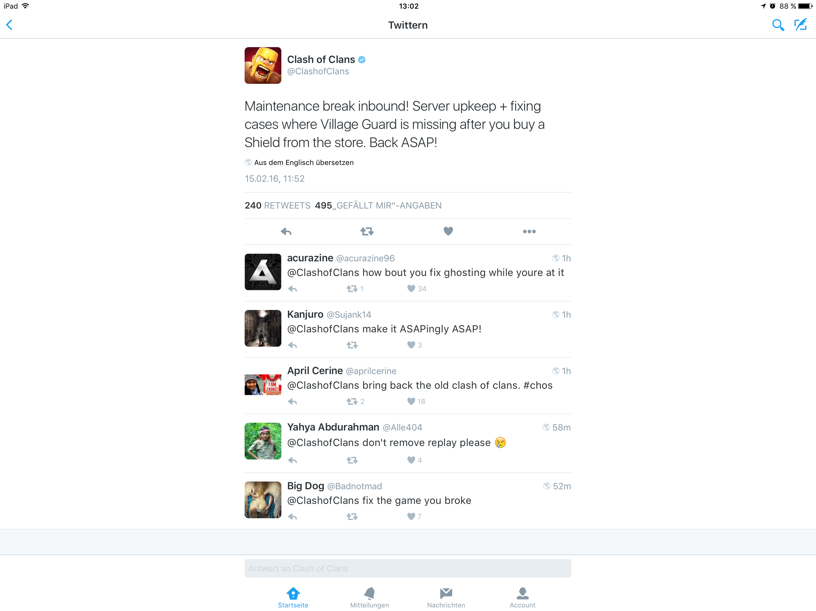 #11.102 Nee die Truppe kommt frühestens April hab ich gelesen, die war neulich noch ein paar Wochen davon entfernt überhaupt erstmalig gezeigt zu werden, hieß es von irgendwem Offiziellen. Ich tippe mehr auf eine schnöde Serverwartung die aufs Spiel keinen Einfluss hat.