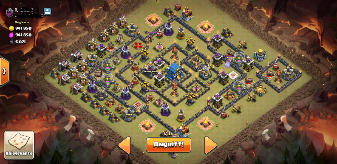 Wie würdet Ihr hier angreifen? Truppen die Max sind: Elektrodrachen,Bowler,Ballon,Hexen,Drachen,Alle Helden,Magier,Heiler,Riesen,Lavahund.Ich wollte eigentlich mit Elektrodrachen angreifen. Von 3 Uhr mit dem Mauervernichter rein und Queen + King. Mit der Hoffnung den Inverno und vielleicht den Adler zu bekommen?