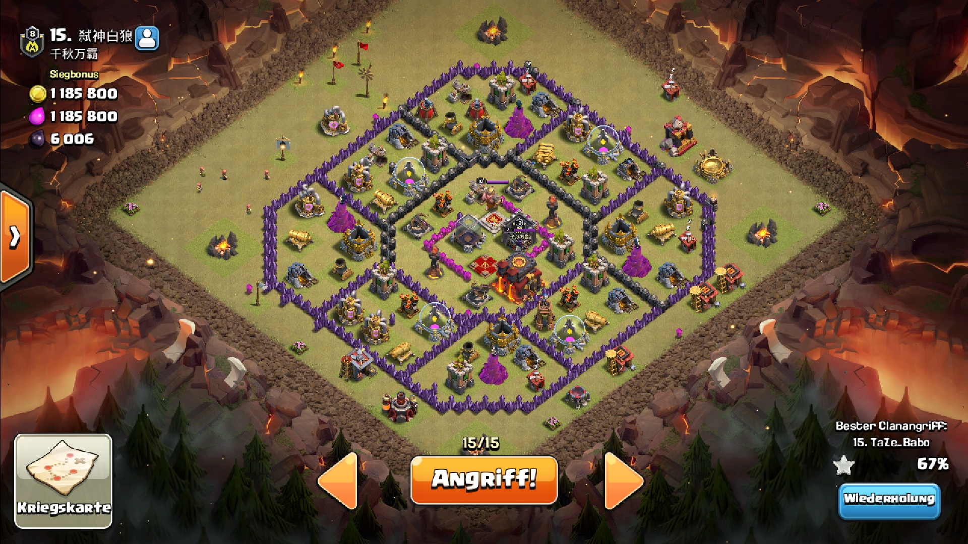 Zum Gegner, falls du nochmal auf so einen treffen solltest: Deine Truppen und Zauber und die schlecht gerushte Def des Gegners lassen einen simplen Loonspam zu.