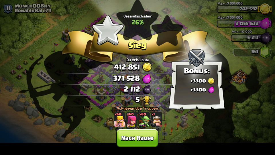 Hatte auch noch einen danach gehabt wo es anders herum war, 451.000 elixier und so 350.000 gold