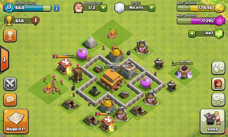 ach so ich so die cb steht mittlerweile außerhalb der mauern (da wo auf dem Bild das elixierlager steht), dafür steht der bogenturm drinnen und das elixierlager am bogenturm platz... Hatte vergessen nen neuen screenshot zu machen.