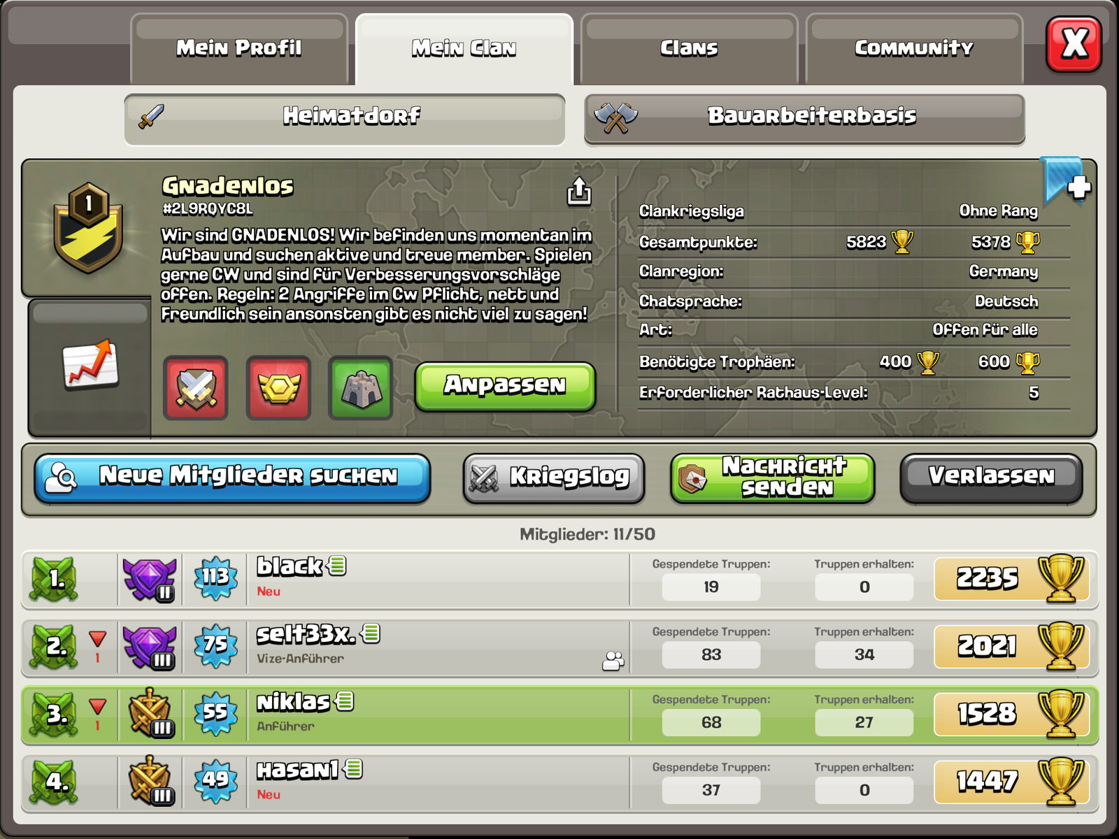 Wir sind Clan Gnadenlos und suchen noch aktive und treue Spieler.