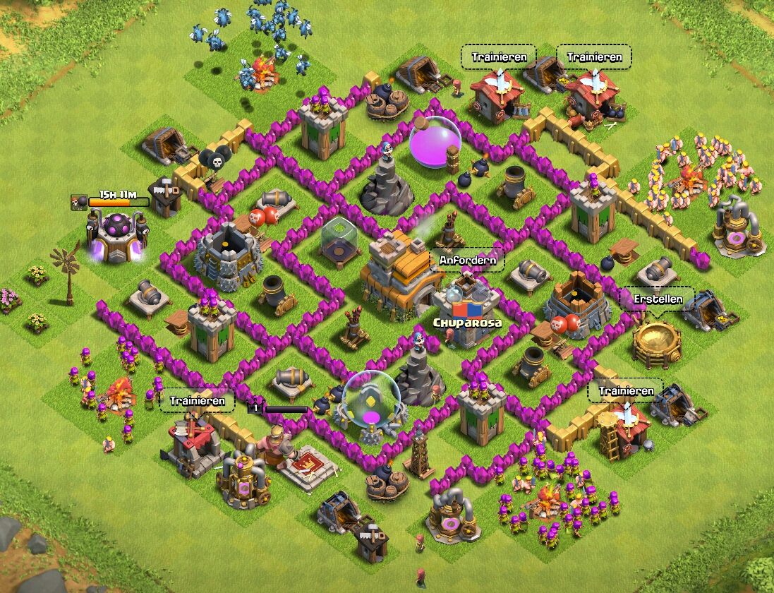 Ich denke also, dass du dich mehr darauf konzentrieren solltest deine Ressourcen zu schützen...denn gegen Drachen kannst du dich eh nicht verteidigen (ist einfach so, geht erst ab RH8 rel. gut, weil man da 3 Lv. 6 Luftabwehren hat) und für Ballons+Lakaien musst du nur die Magiertürme ausbauen. -