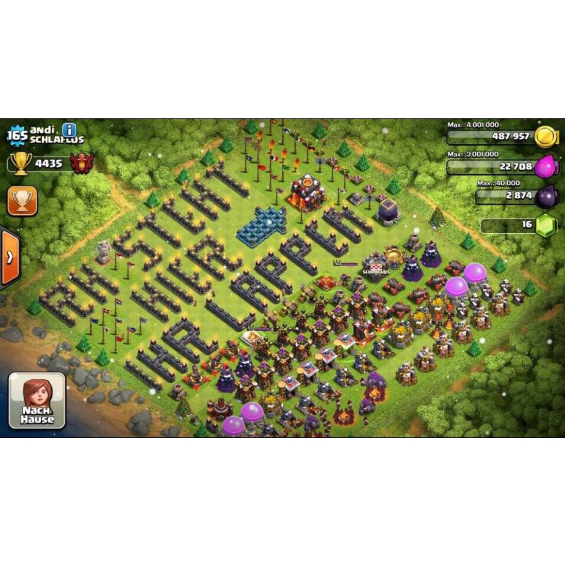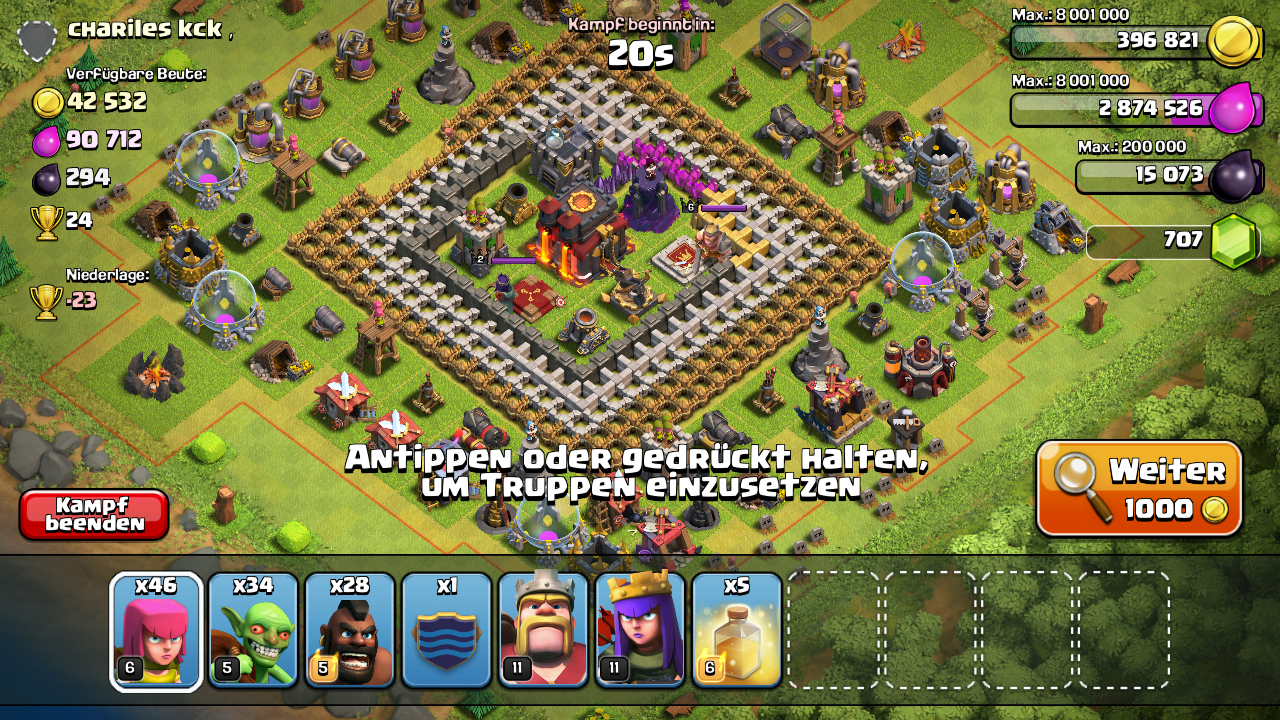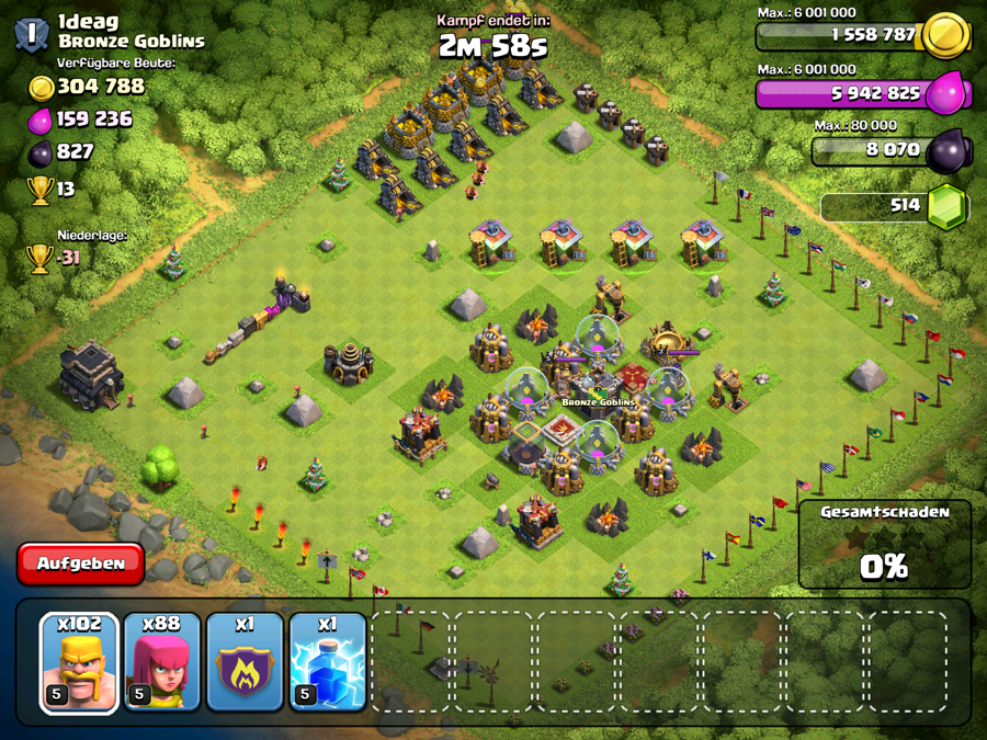 #317 Auch wenn die Level der einzelnen Gebäude jetzt nicht unbedingt schlecht ist finde ich die Aufstellung der Base GRAUENHAFT. Ich bin von da wo die Ballons sind mit Balloonion draufgegangen und konnte lockere 2 Sterne holen. Hätte er eine twas bessere Aufteilung der Gebäude gehabt, wäre es wahrscheinlich noch nicht mal 1 Stern gewesen. Ich meine wer so eine Base baut ist selner schuld
