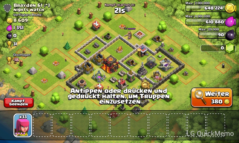 Wohl eher: Was kümmert mich das ich noch 3 Magiertürme, 3 Luftabwehreinheiten, 2 Infernos, 3 X-Bows, 1 Armeelager & Dunkles Elexbohrer kaufen kann xD