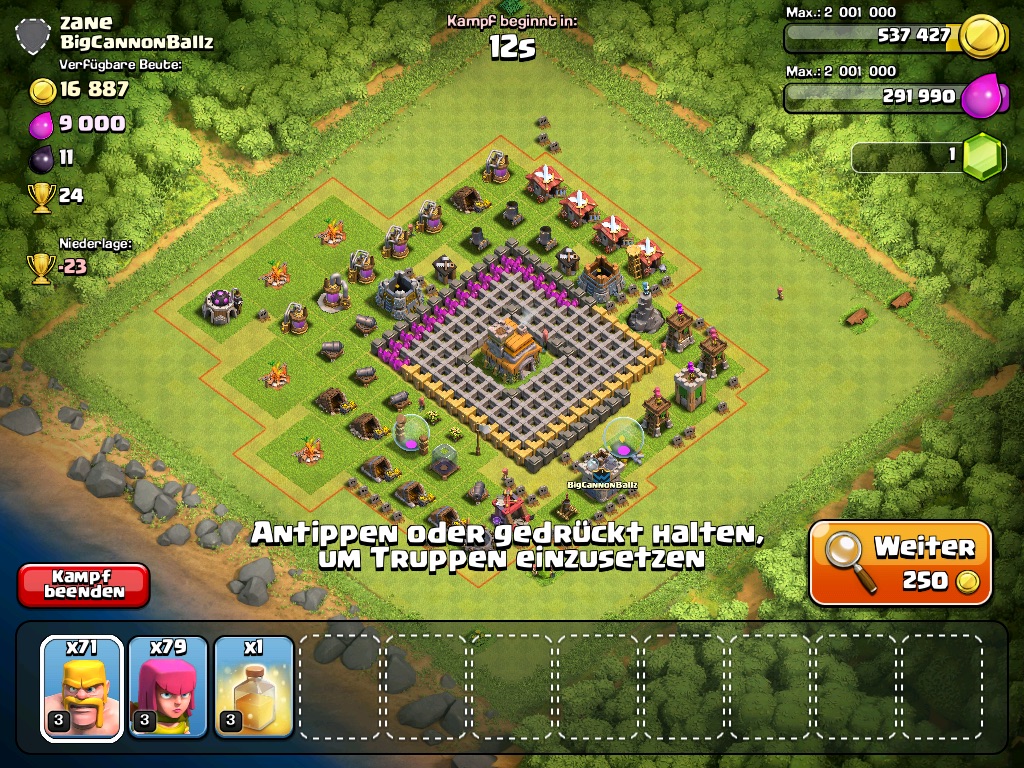 Heißt also: Wenn man selber 2 Inferno Türme + den 3. Xbow stehen hat, bekommt man mit sehr großer Wahrscheinlichkeit einen gleichwertigen TH10er als Gegner...