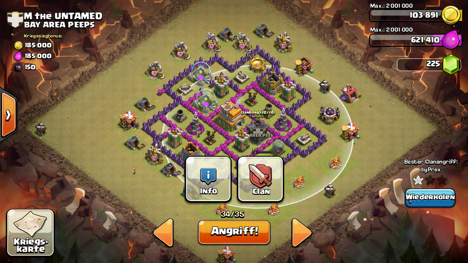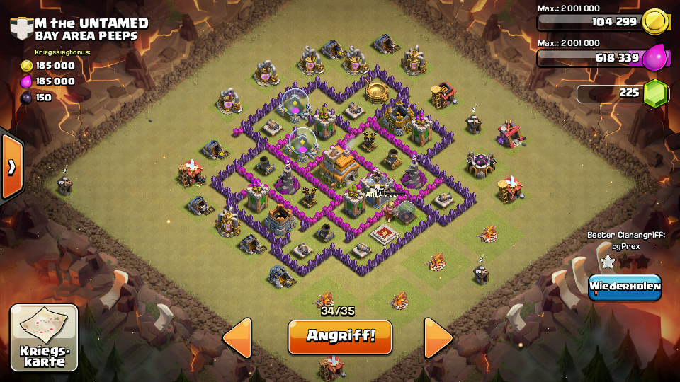 - Schicke dann deine Aufräumtruppen und die CB ins Dorf damit sie aufs Rh gehen...sollten definitiv 2 Sterne werden...mit ein wenig Glück sogar 3. (auch wenn das unwarscheinlich ist, da deine Truppen noch lv.3 sind und er RH7 schon gut ausgebaut hat)
