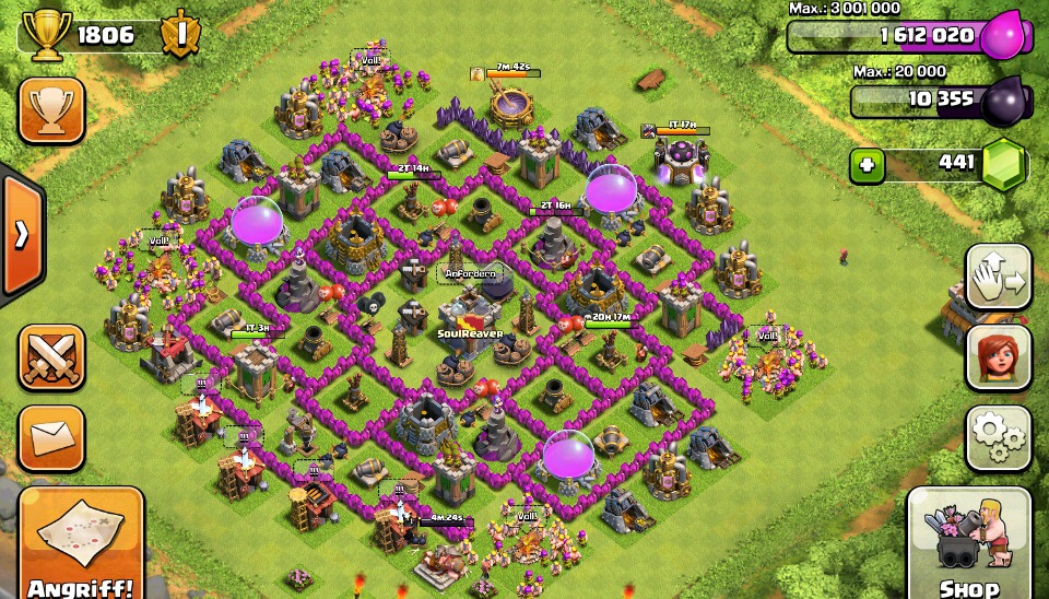 Das ist mein aktuelles Dorf mit Rathaus Lvl 8, alle 4 Bauarbeiter sind im Dauereinsatz - will ja Verteidigung hochkriegen. Was sagt ihr zu dem Dorf oder habt ihr noch Verbesserungsvorschläge? Und achja schon mal im voraus: sowas wie "ja stell dein Rathaus rein" könnt ihr euch sparen