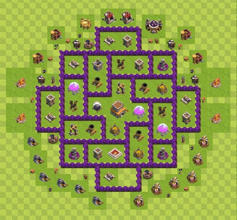 #7 Ich finde das Untere nicht wirklich schlecht. Sammler und Speicher raus aus dem Dorf und die Luftabwehr nach innen ziehen. Tesla auch reinziehen. Freiwerdende Mauern dazu verwenden das RH nochmal zu schützen oder die Quadranten nochmals unterteilen. Ich würde mich nicht zwingend gegen eine spezielle Taktik schützen. Das erscheint mir absolut sinnlos.