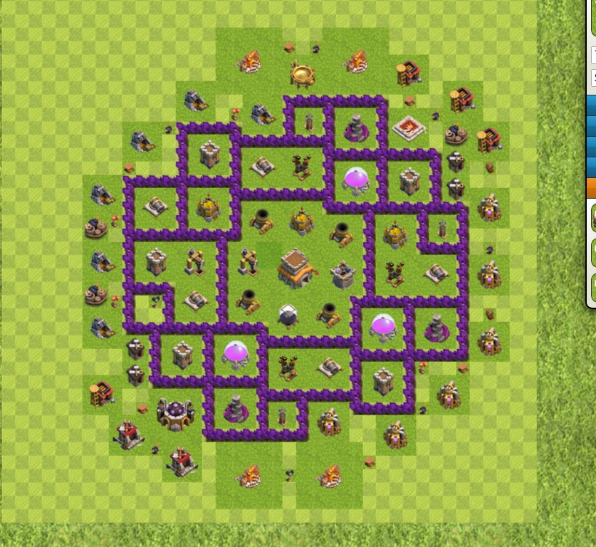 Die Sprungfallen finde ich irgendwie verschenkt. Wenn ein Gegner von einer Seite angreift sind die Fallen auf der anderen Seite sinnlos. Was ich in Kriegen mal testen würde wäre, dem Angreifer ein paar Leckerli hinschmeissen, also ein paar Sammler/Speicher auf eine Seite platzieren um ihn zu einem Angriff von dort aus zu bewegen und die Fallen dann dort an den Mauern platzieren. Die Sammler/Speicher etwas weiter weg von den Mauern, damit weite Wege zurückgelegt werden müssen.