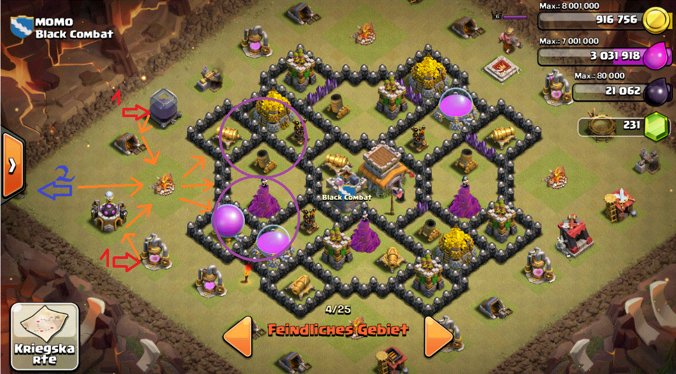 ...ich wollte die Verteidigung rauslocken und von unten rechts mit GoWiPe angreifen ...aber mit Drachen von oben mal überlegen. Denke mehr als zwei Sterne sind nicht drin.