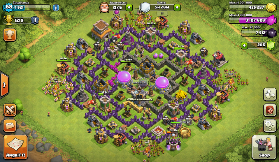Hier sieht ihr mein Dorf. Die Verteidigungen sind alle größenteils auf Max-RH7. Mit
