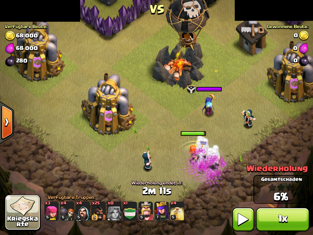 Anschließend kann der King gezündet werden, weil keine Türme mehr auf die Barbaren schießen können und er zügig anfängt aufzuräumen.