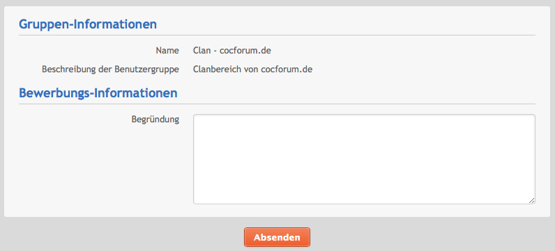 4. Jetzt hast du die Möglichkeit eine Nachricht für deinen Clananführer zu hinterlassen, damit er bescheid weiß wer du bist, und klickst anschließend auf "Absenden"