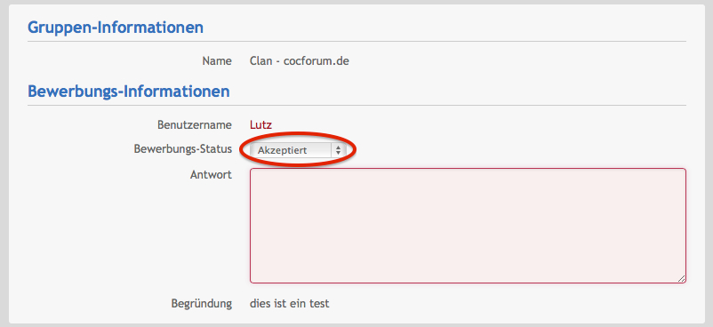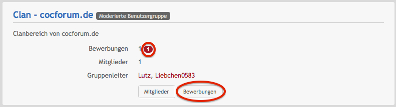 3. Hier siehst du deinen Clanbereich, und die entsprechenden neuen Bewerbungen