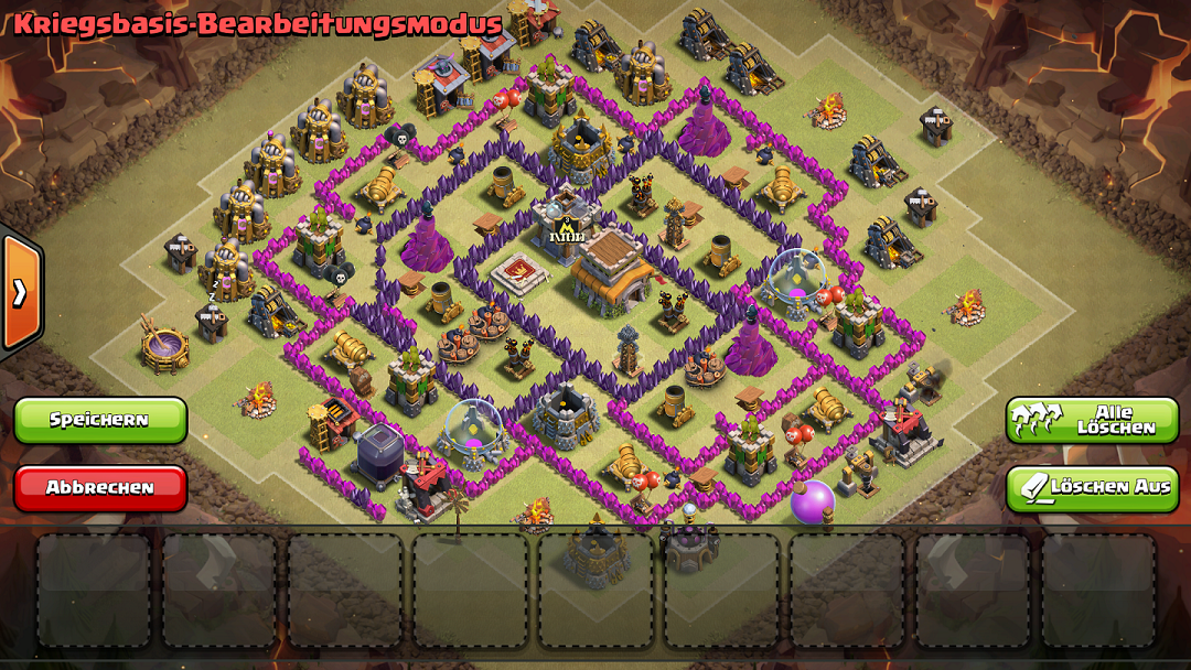 Hier mal der erste Entwurf. Die Idee dahinter: LA soweit in die Mitte stellen, dass die Drachenangriffe weniger erfolgreich sind, es gleichzeitig aber auch Schweinen und Gowipe Angriffen schwer machen.