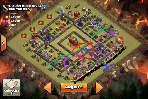 Meine Überlegungen waren GoWiPe mit einem Sprungzauber um in die Mitte zu gelangen, jedoch glaube ich, dass ich entweder das Rathaus oder die 50% nicht bekommen..