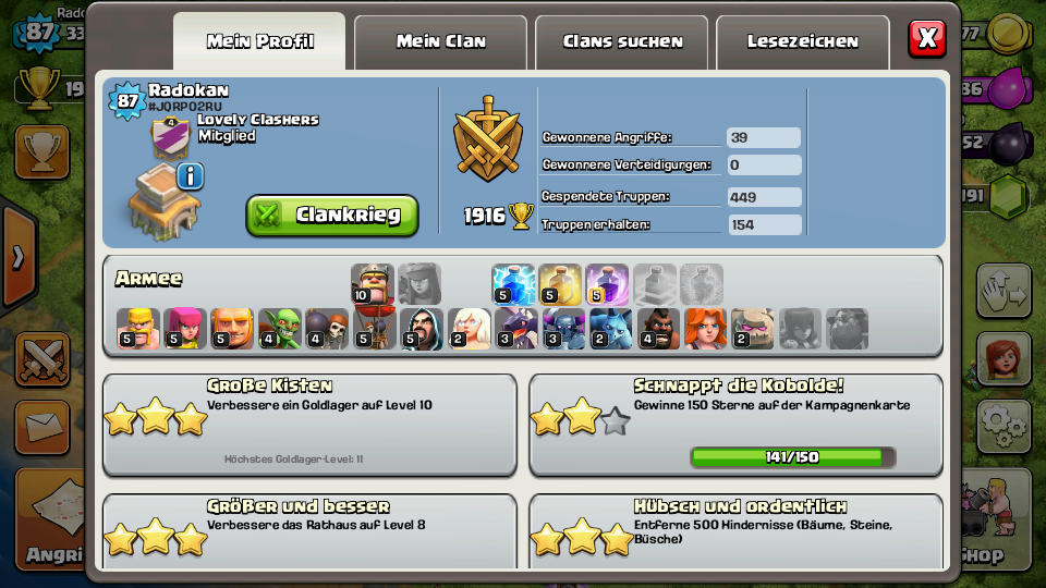 Meine Armeelager und meine CB sind max, also 200 + 25 Truppen stehen mir zur Verfügung.