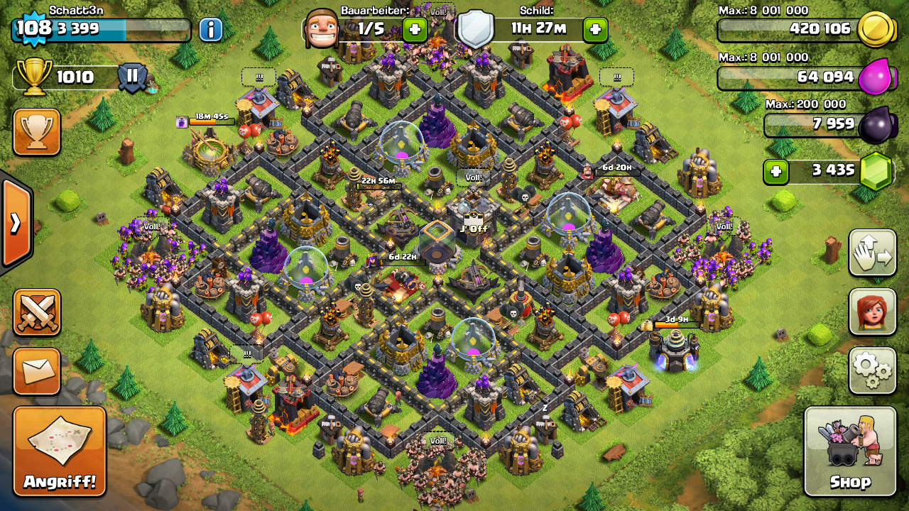ab morgen habe ich das erste Jahr in CoC auf dem Buckel und da ich gerade nur Mauern zu farmen habe dachte ich, ich frage Mal in die Runde wann ihr auf Rathaus 10 gehen würdet. Die Verteidigung ist jetzt seit ca.1 Woche fertig und lediglich die Fallen müssen noch gemacht werden.