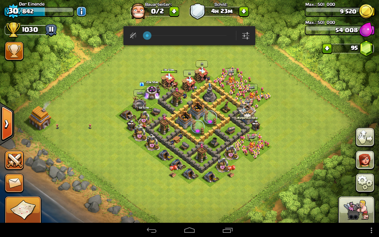 Würde dir auf jeden Fall schonmal empfehlen die Clan Burg mittiger zu platzieren und deine Lager auf zu teilen. Wenn du sie so stehen lässt ist es für den Angreifer recht einfach alle leer zu machen ;)