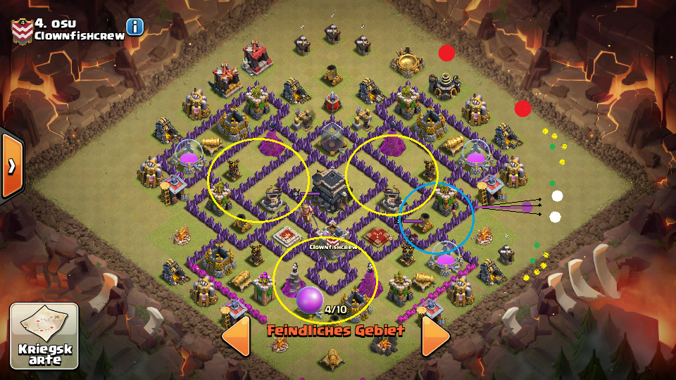 5) Sobald die gegnerischen Clanburgtruppen den Golem erreicht habenwerfe ich einen Blitz rein um diese zu töten, evtl nutze ich auch einen Wutzzauber, das hängt von Lust und Laune ab.
