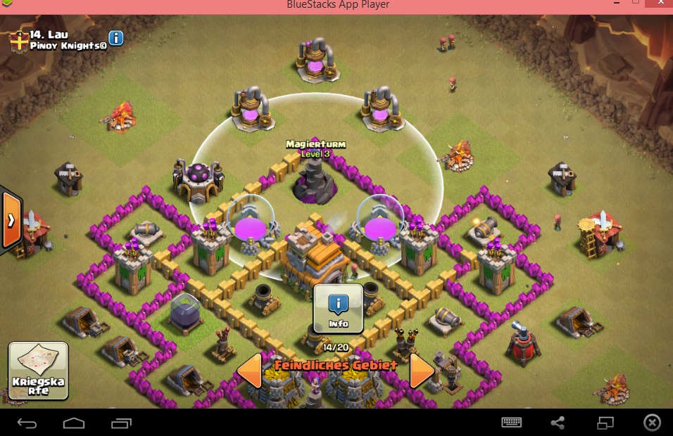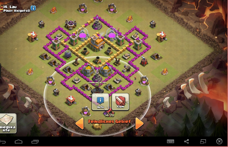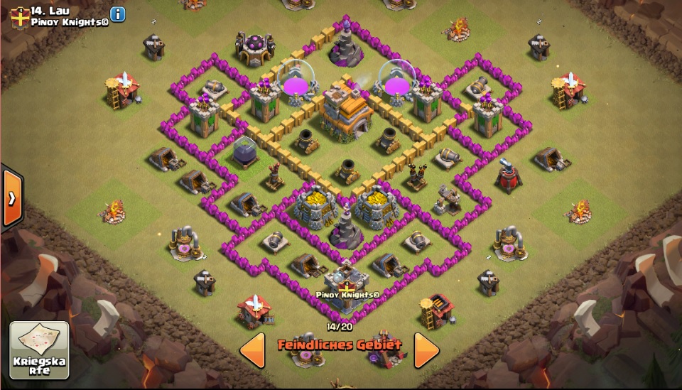 Ich persönlich würde ja von oben beim Magierturm angreifen und die Seite so abfarmen, dass ich die Clanburgaggro nicht ziehe. Und natürlich Haupthaus. Die Range der Clanburg geht nämlich nur bis zum ersten unteren Mörser.