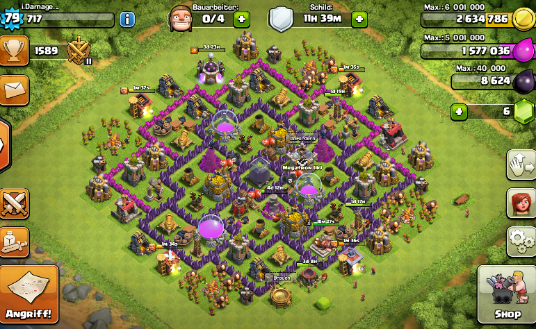 Ich wollte mal euch frage wie ihr mein Dorf so findet. Ich persönlich finde es auf einer Art schon gut gebaut auch vom Layout her aber doch stört mich dieses Layout - vielleicht habt ihr ja klasse rth 8 Dörfer die auch was taugen. Weil alle Letze Angriffe da wurde ich komplett zu 100% leer gemacht und das geht mir solangsam auf dem Keks weil zuvor auf rth 7 hatte ich ne Bomben läuft gehabt womit man zu Frieden sein konnte,aber für 8er Rathäuser gibt es so viele Layouts. Deswegen auch die neben frage halt ob ihr für 8 rth mit Layouts gute Erfahrungen gemacht habt.