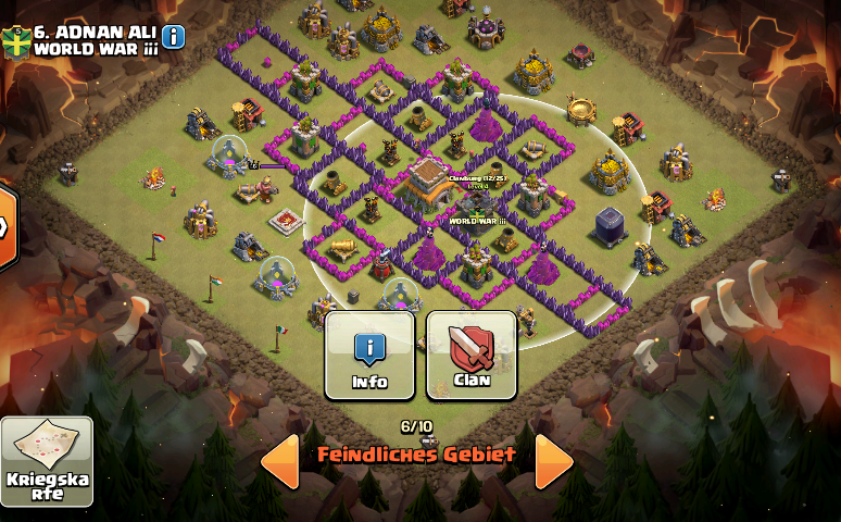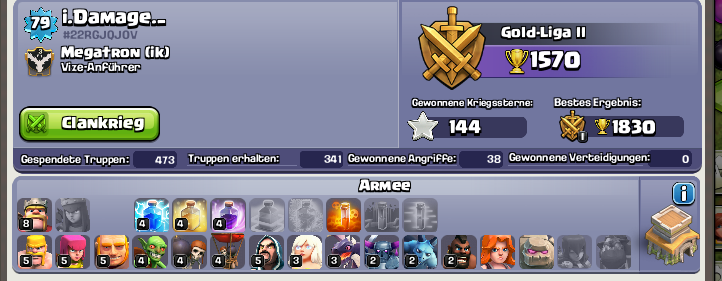 Ich bräuchte mal eure Hilfe und zwar geht es drum diesen Gegner im Ck anzugreifen. Nur um ehrlich zu sagen habe ich so eine Bau Weise noch nie gesehen und weiß einfach nicht wie ich ihn angreifen soll. Mit Drachen besteht die Gefahr dass sie außen Rum fliegen. Und für nen gowipe waren ja ziemlich viele Mauern im weg. Vielleicht tu ich mich irren, und lass mich gern auch von einem besseren belehren ich würde mich freuen wenn ihr mir da helfen könntet. Im unteren Bereich des Screenshots sind meine Truppen aufgelistet. Der giftzauber fällt weg weil derzeit die dunkle Fabrik auf 2. Läuft wie wiederum im Labor auf 2. Meine Truppen Kapazität beträgt 200 Mann. Und mein babaking ist auf lvl 8.