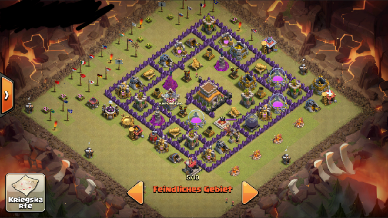 #2 Gibt mehrere Möglichkeiten gegen so eine Base vorzugehen. Das einfachste wäre hier wohl ein Drachenangriff von Nordwest mit Wut- und Heilzaubern, da hier kaum Lager oder sonstige Gebäude mit vielen Hitpoints stören. Der Luftfeger steht auch nicht besonders gut.