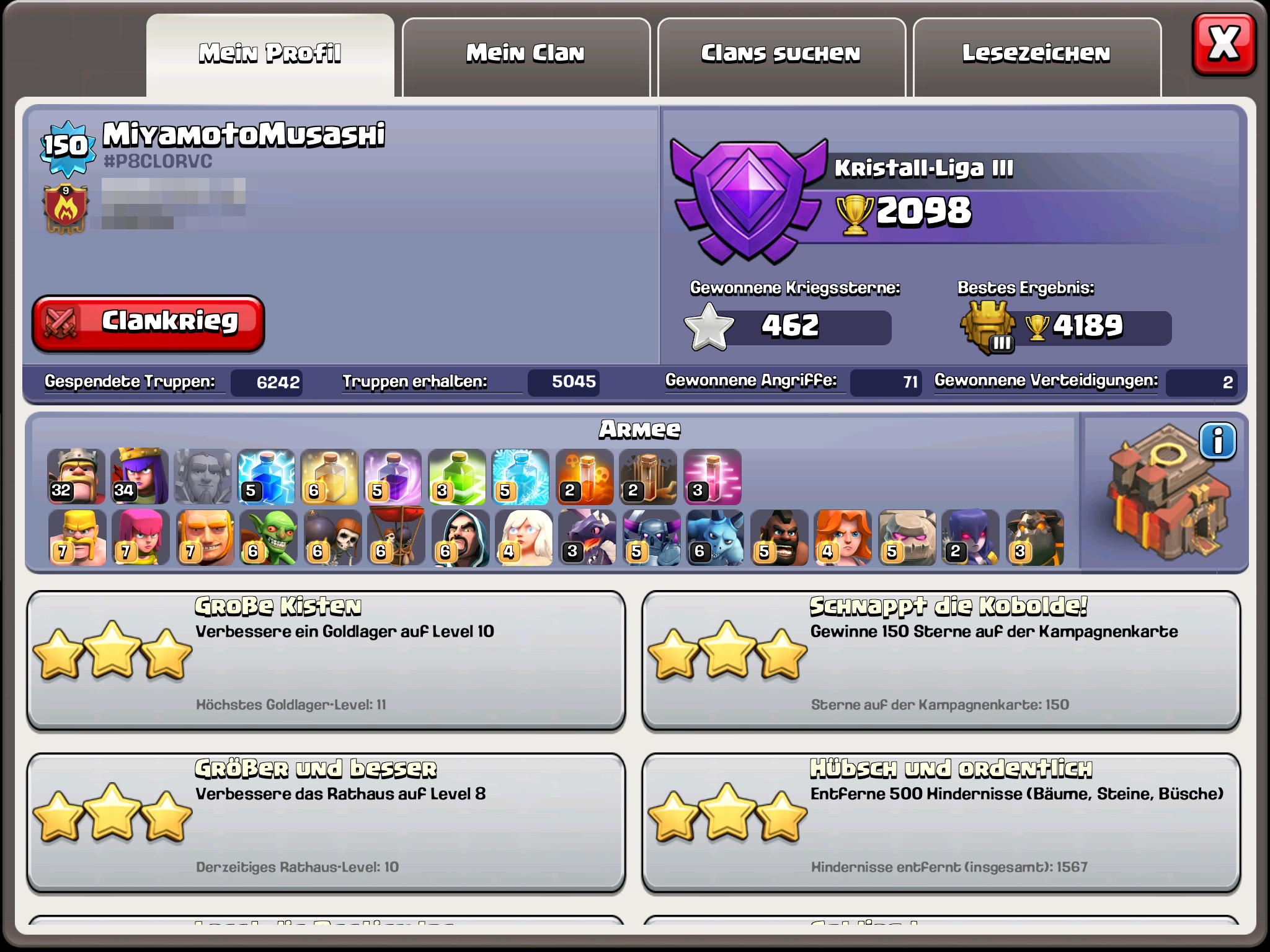 Deff wird absichtlich auf Th9 Niveau momentan gelassen weil meine Helden noch zu Low sind für Max Th10 deff.