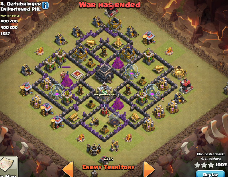 Alles anzeigenAber es ist halt so, dass die Deff viel mehr zählt als die Offensive.Mit hohen Helden kannst du dann locker 2 mal 3 Sterne bei den Gegnern machen, da du höchstens als Mid Th 9er angesehen wirst. Und mit dem richtigen Dorflayout wirds dann sogar noch für die Gegner schwer dich zu 3ern.