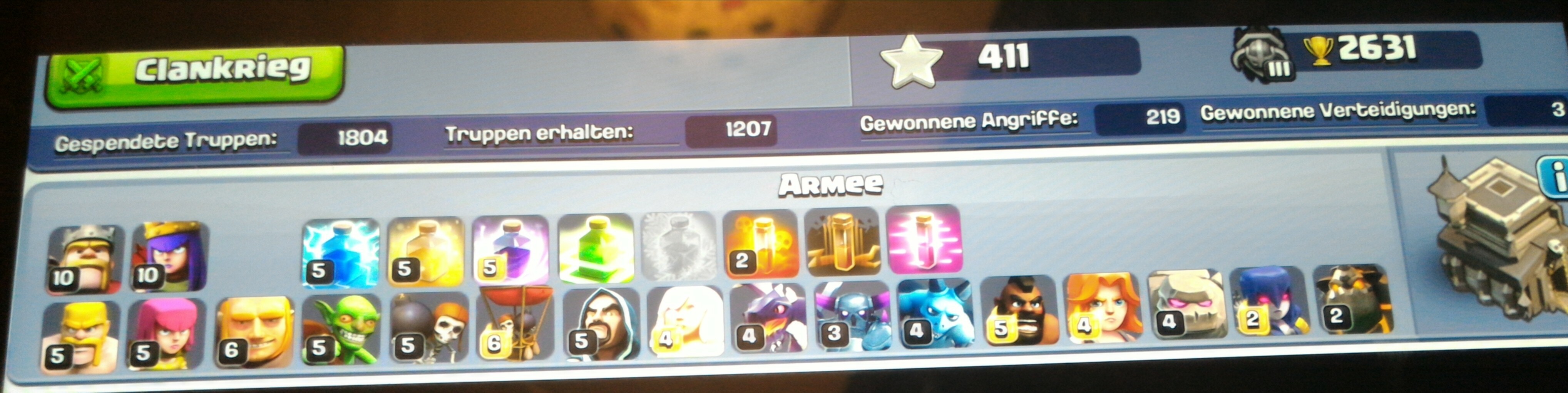 Standardgowipe mit 3 Golems und diverse Mauerbrecher, in jede Reihe einen .. dahinter diverse Magier ..