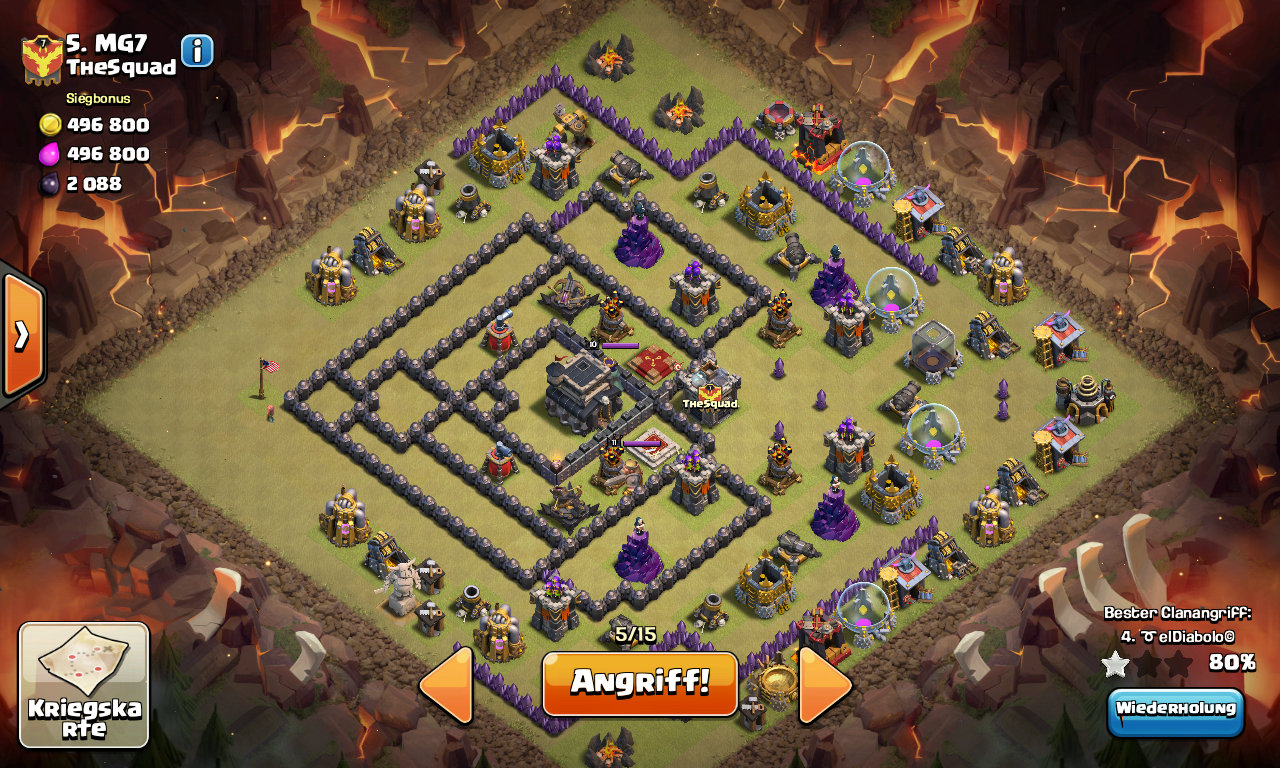 Je einen golem, pekka und 4 mags von 8 und 10 Uhr. King und Queen jeweils außen zum aufräumen, wenn die Truppen sich der Mitte nähern einen dritten golem mit ein paar hexen oder oder Magiern von Osten rein.im Idealfall treffen die sich bei der cb und dort setz ich dann einen jump. Bericht folgt.... -