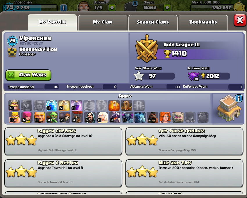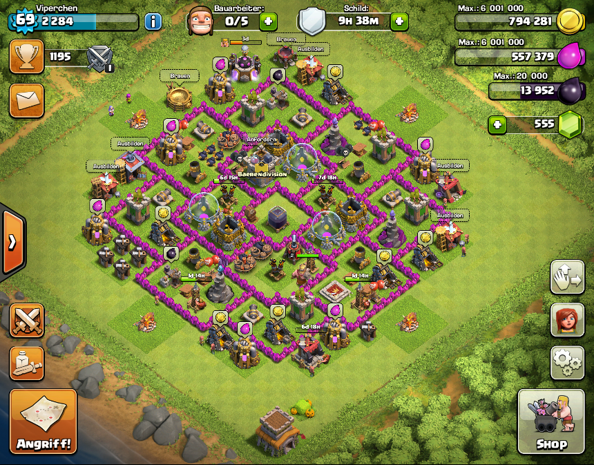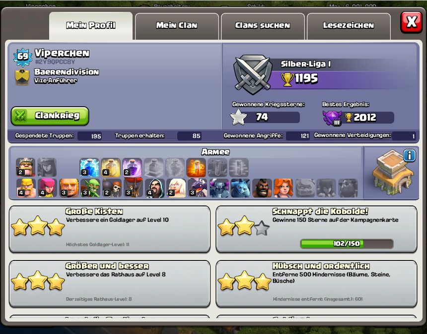 Mein normales Dorf sollte meine Ressourcen schützen und das Kriegsdorf natürlich wenig Sterne hergeben! (Sorry, bin mit den ganzen Abkürzungen bei CoC noch nicht so ganz vertraut!)