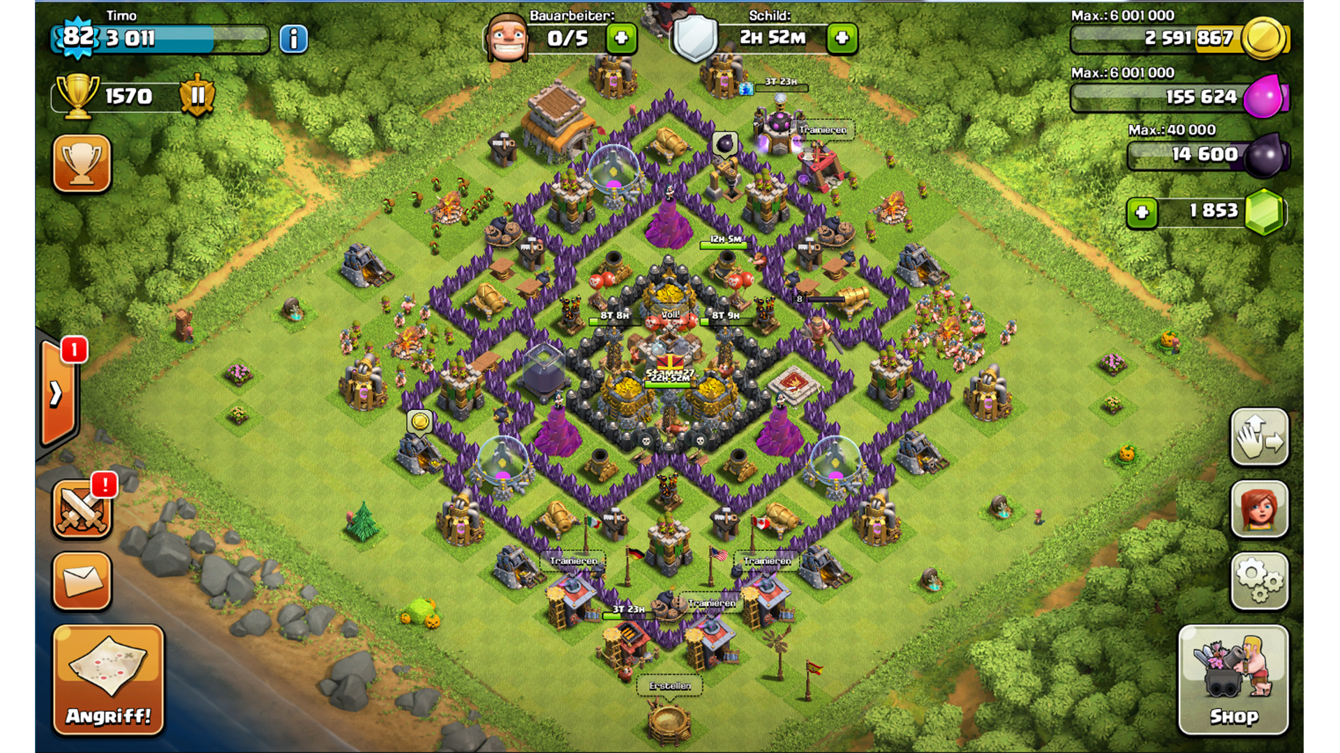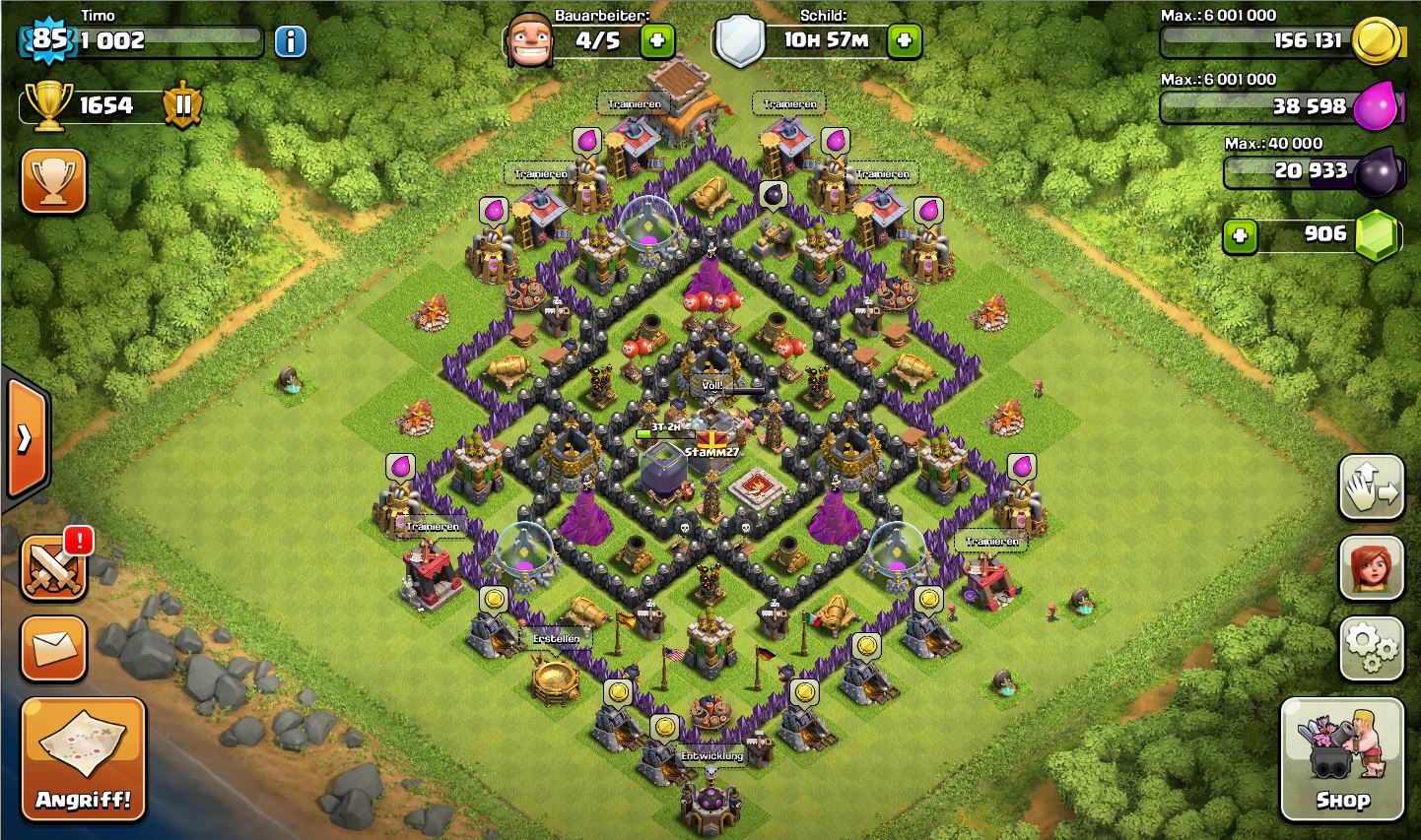 #27 Ich habe schon fast alle Gebäude auf Max, es fehlen noch die dunkle Kaserne auf 4 und das De-Lager auf 4 (bereit im Ausbau). 111 Mauern fehlen mir noch, wenn alles fertig ist geht das Rathaus auf 9. Update Gibts einmal vor dem RH Update und einmal nach dem RH Update!