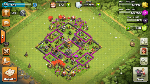 ich glaube, du hast da ein Loch in deiner Base, oder? Direkt am Rathaus können Angreifer Truppen setzen. Ist das so gewollt? Wenn nicht, solltest du dort noch eine Bauhütte hinsetzen.Du solltest versuchen so schnell wie möglich deine neuen zusätzlichen Gebäude (Luftabwehr, Bogiturm) hochzuziehen.